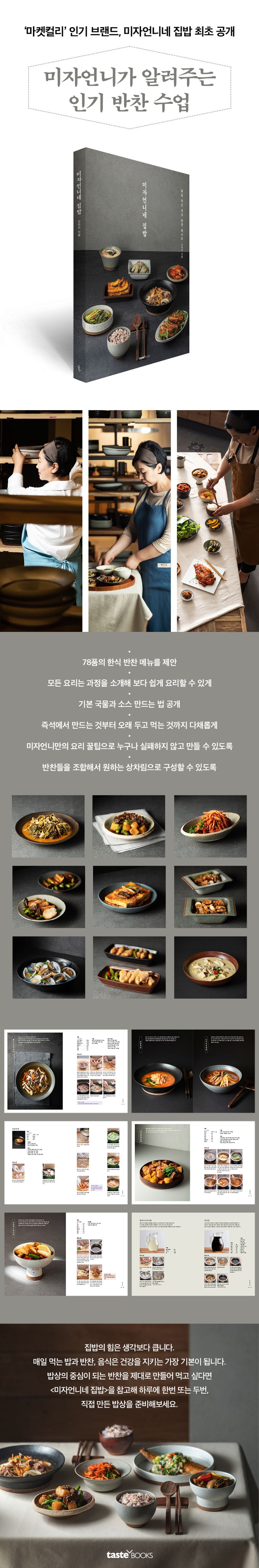 마켓컬리에서 가장 인기 있는 반찬 브랜드 ‘미자언니네’는 밑반찬, 저장 반찬부터 전통 반찬, 보양식, 한식 디저트, 소스와 국물까지… 우리 밥상의 기본이 되는 음식을 선보입니다. 이 모든 레시피를 오랫동안 개발하고 만들어온 한식 요리 연구가 선미자는 〈미자언니네 집밥〉을 통해 한국인들이 가장 좋아하는 메뉴를 소개합니다.