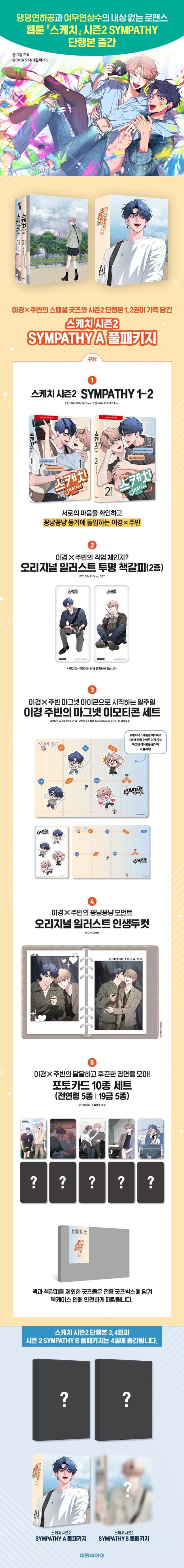 스케치시즌21-2권과시즌2오리지널굿즈로구성된풀패키지『스케치』시즌1에이어시즌2가바로출간된다.인기웹툰『스케치』의두주연이경×주빈은시즌1에서서로의마음을확인하고커플링이이루어졌고,시즌2에서는두사람의꽁냥꽁냥한러브모드를확인할수있다.이번시즌21-2권의표지는서로마음을확인한이경,주빈이혼자가아니라둘이함께하는모습의일러스트로꾸며졌다.역시도삭작가가시즌2단행본을위해새로그린오리지널일러스트다.패키지박스의일러스트역시,연이어출간될『스케치시즌2SYMPATHYB풀패키지』와연결되는형태의일러스트로나란히놓아야완성되는형태다.이경과주빈,주빈과이경의작품속결정적장면을재구성했다.이외에,이경과주빈이깜찍한표정으로기분을표현하고있는‘이경주빈마그넷이모티콘세트’.일주일의스케줄과컨디션을『스케치』의두주연과함께꾸밀수있는아이템이다.여기에오리지널일러스트로구성된인생두컷,오리지널일러스트책갈피(2종),그리고보다탄탄한재질로만들어진,자그마치10매의스파클링코팅포토카드(전연령5종/19금5종)도포함된다.단행본을제외한굿즈는오리지널굿즈박스에안전하게담겨있다.