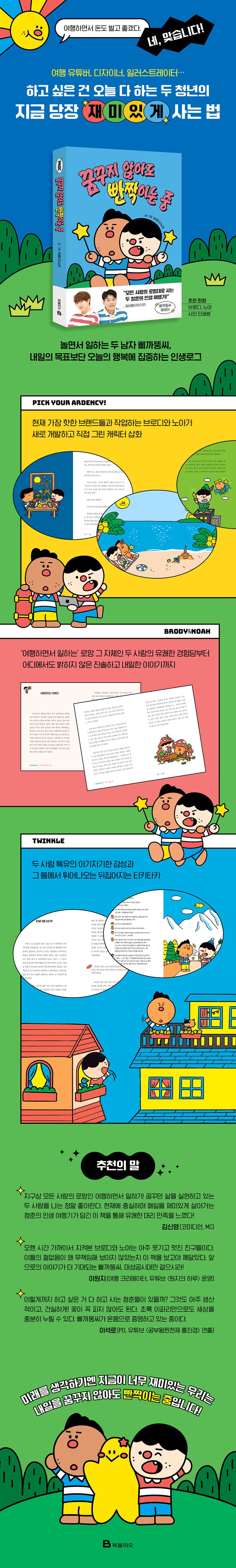 유튜브 영상 속에서는 마냥 깨발랄한 청춘들이지만, 이들에게도 또래들이 겪는 고민과 숨기고픈 이야기가 없었던 건 아니다. 이 책은 그러한 이들의 낭만 가득한 삶은 물론이거니와 어디에서도 밝히지 않았던 진솔하면서도 내밀한 이야기까지 담아냈다. 아울러 국내 핫한 브랜드들의 러브콜을 받고 있는 실력파들답게 직접 개발하고 그린 일러스트까지 실었다.