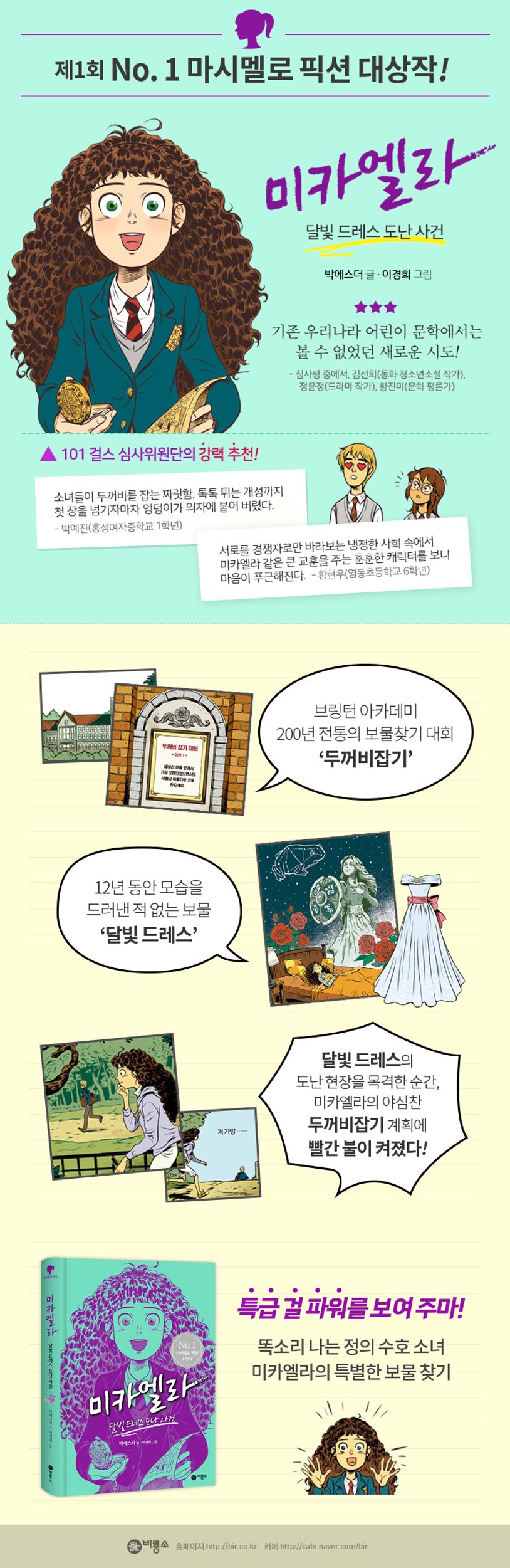 그동안 초등 여자아이들은 멋진 여자 주인공이 주체적으로 로망을 실현해 나가는 이야기를 기다려 왔다. 교훈 일색의 이야기, 남자 주인공 일색의 이야기에 갈증을 느끼던 소녀 독자들에게 미카엘라의 이야기는 반가운 작품으로 다가갈 것이다.
