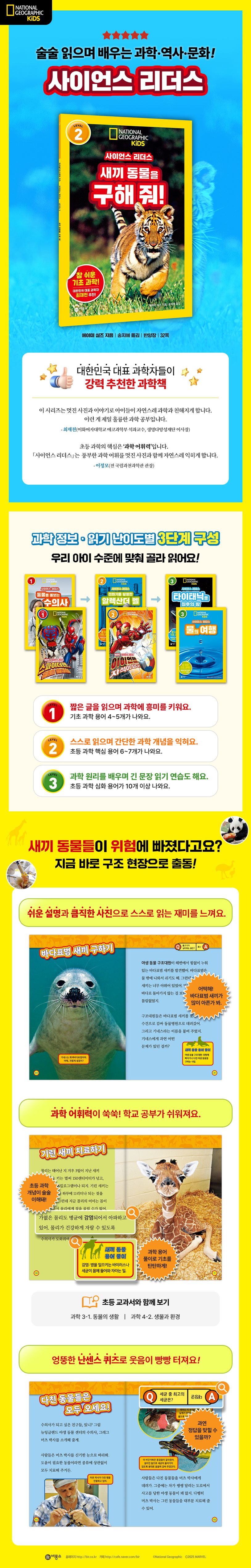 전 세계 12개국에서 2000만 부 이상 판매된 단계별 과학책 시리즈 「사이언스 리더스」가 ㈜비룡소에서 출간되었다. 130년 전통 내셔널지오그래픽이 만든 이 시리즈는 자연에 호기심을 갖는 유아부터 과학 교과 학습이 필요한 초등까지 두루 만족할 수 있다. 특히 내셔널지오그래픽 사진작가들의 세계 최정상급 사진들이 매 페이지마다 큼직하게 실려 과학 정보를 생동감 있게 전한다. 동물, 우주, 날씨 등 아이가 좋아하는 주제와 3단계 중 아이 수준에 알맞은 책을 읽다 보면, 저절로 과학 어휘와 개념을 익히고 초등 과학에 자신감을 기를 수 있다.