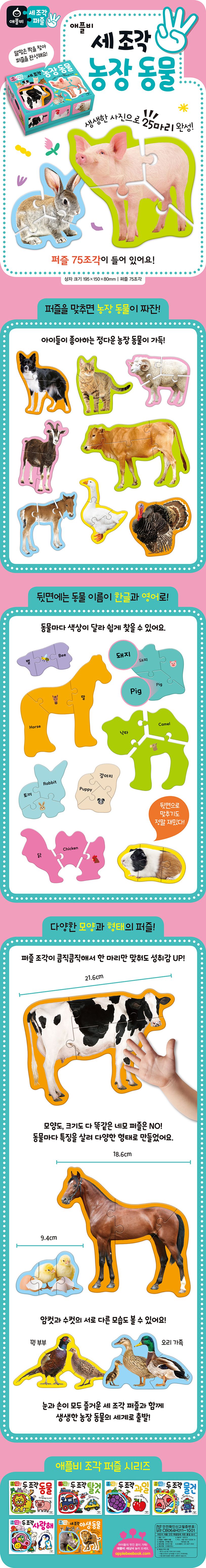 세 조각 퍼즐 농장 동물 (장난감/완구)