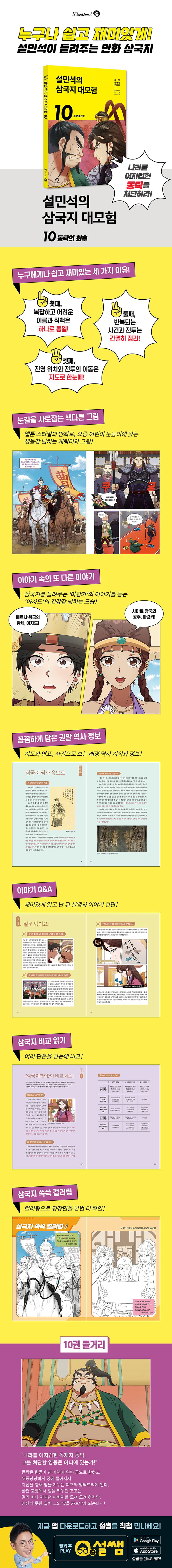 먼저 삼국의 역사와 소설에서 꼭 필요하고 감동이 될 만한 내용을 가져와 설민석 선생님이 가장 쉽게 들려줍니다. 또한 오늘날의 어린이들이 더욱 재미있게 빠져들도록, 상상력으로 이야기를 덧붙여 멋진 판타지 세계를 그려냈습니다. 더불어 웹툰 명가 ‘재담미디어’ 산하의 전문 창작 스튜디오에서 삼국지 인물들을 보다 실감나고 색다른 그림으로 만들어냈지요. 〈설민석의 삼국지 대모험〉에서 위기를 기회로 바꾸는 인물들의 모습을 보며, 오늘날을 살아가는 용기와 지혜를 얻길 바랍니다.