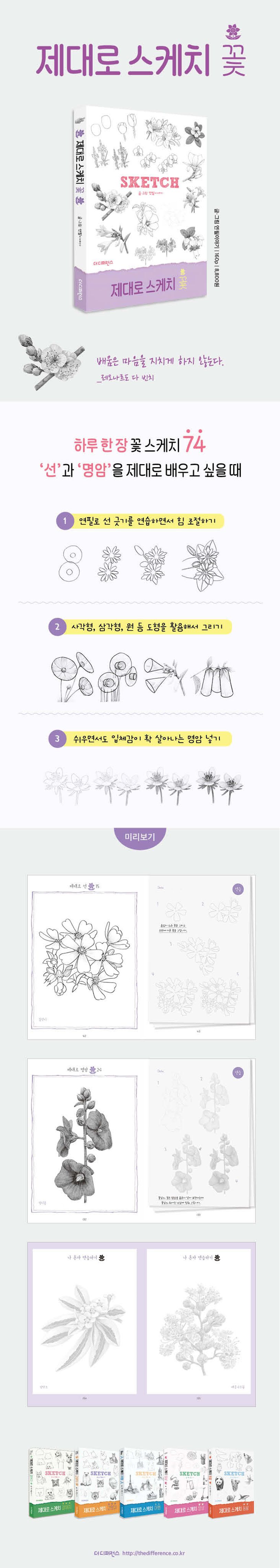 『제대로 스케치 꽃』은 화실 선생님이 알려주는 그림의 기본기인 ‘선’과 ‘명암’을 약 70여 번 연습해볼 수 있도록 구성한 스케치 책입니다. 이번 주제는 ‘꽃’입니다. 다양한 꽃을 그리면서 그림의 기본기와 재미를 모두 잡을 수 있습니다.