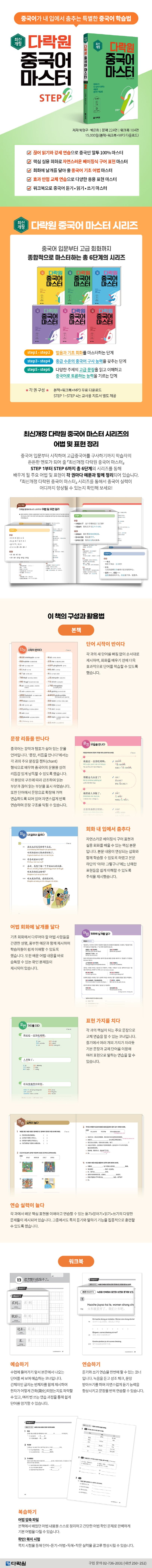국내 최고 교수진의 다년간의 교수 경험을 바탕으로 개발된, 한국인을 위한 중국어 학습 교재의 결정체 『다락원 중국어 마스터 시리즈』의 최신개정판입니다. 기존의 『다락원 중국어 마스터 시리즈』의 특장점은 유지하면서 시대의 흐름과 변화를 반영했고, 학습자의 눈높이에 맞춰 새로 단장했습니다.