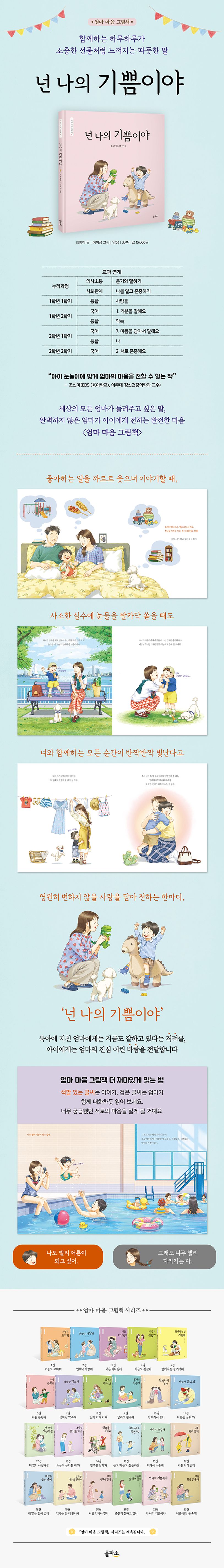 엄마가 아이에게 전하고 싶은 마음을 담은 《엄마 마음 그림책》 시리즈 스물두 번째 권 《넌 나의 기쁨이야》가 출간되었습니다. 《넌 나의 기쁨이야》는 아이가 언제 어디서 무엇을 하든 엄마 아빠에게 기쁨을 주는 존재라는 걸 알려 주는 이야기입니다.