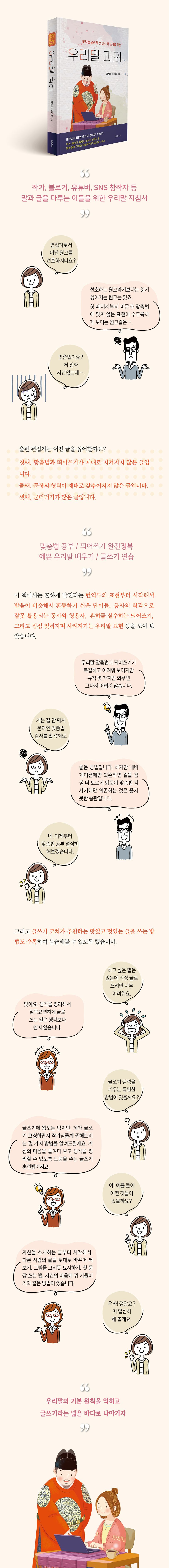 이 책을 통해 우리말의 기본 원칙을 익히고, 그것을 토대로 글쓰기라는 넓은 바다로 나아갈 수 있기를 바란다.