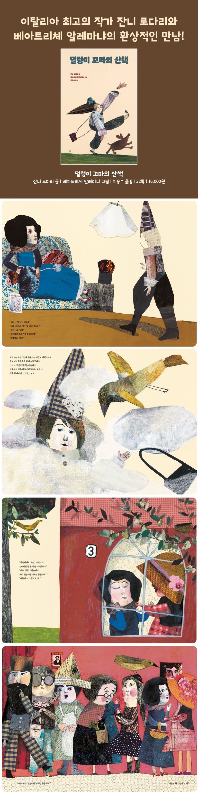 이탈리아 최고의 동화 작가 잔니 로다리와 베아트리체 알레마냐 작가가 만나 덜렁이 꼬마의 실수를 제자리에 돌려놓는 따뜻한 세상으로 데려갑니다. 잔니 로다리 작가의 《전화로 들려주는 짤막 동화》에 나오는 이야기를 바탕으로 베아트리체 알레마냐 작가가 섬세한 콜라주로 작업했으며, 한 편의 인형극을 보는 것처럼 생동감이 넘칩니다. 호기심이 많고 덜렁거리는 꼬마 조반니가 세상 밖에 나가면 팔과 다리가 사라져도 모른 채 깡충깡충 뛰어다닙니다. 그러면 이웃들이 조반니가 잃어버린 것들을 주워 집에 가져다주고, 엄마는 모두 제자리에 붙여줍니다. 덜렁이 꼬마와 함께 신나는 모험을 떠나며, 어린이를 응원하는 따뜻한 주변 세계를 발견하게 되며, 어린이는 수많은 실수를 통해 성장하며, 어린이가 바르게 성장하는 가장 큰 동력은 부모와 사회의 사랑과 포용이라는 잔니 로다리 작가의 위대한 철학이 감동을 전합니다.