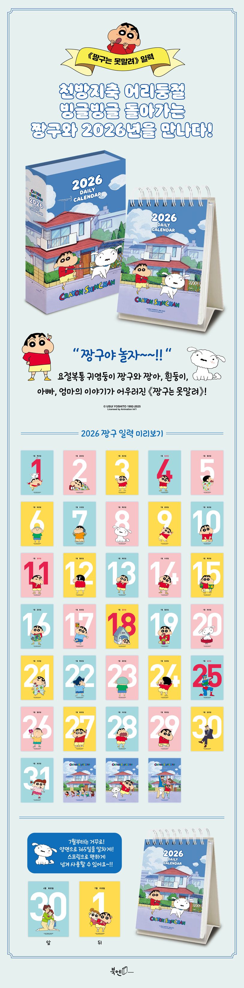 매일 아침, 혹은 지친 하루 끝. 달력 한 장을 넘기는 순간, 엉뚱하고 유쾌한 짱구가 우리 얼굴에 웃음을 터뜨립니다.