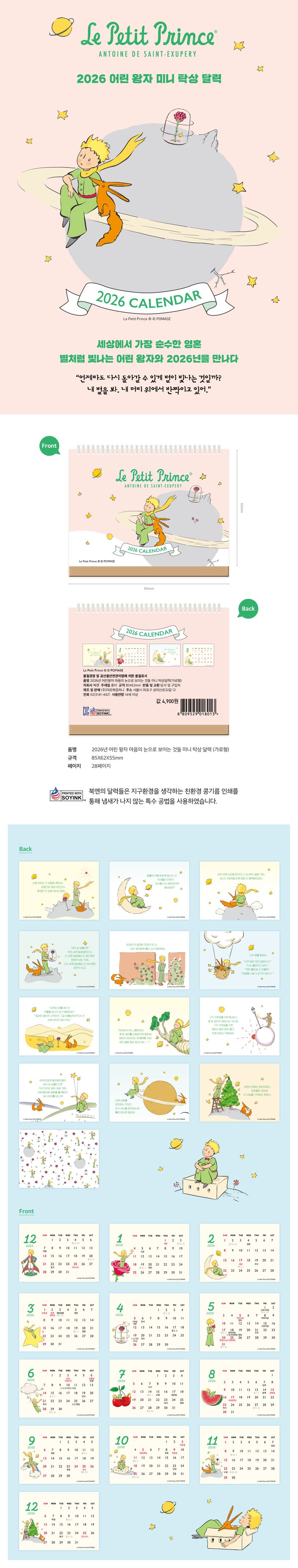 전 세계 독자들의 사랑을 받아온 명작 《어린 왕자》가 특별한 모습으로 새해를 밝힙니다. 손바닥 안에 쏙 들어오는 85×62 사이즈의 미니 달력으로 제작되어, 언제 어디서나 어린 왕자의 따뜻한 이야기를 곁에 두고 즐길 수 있습니다.