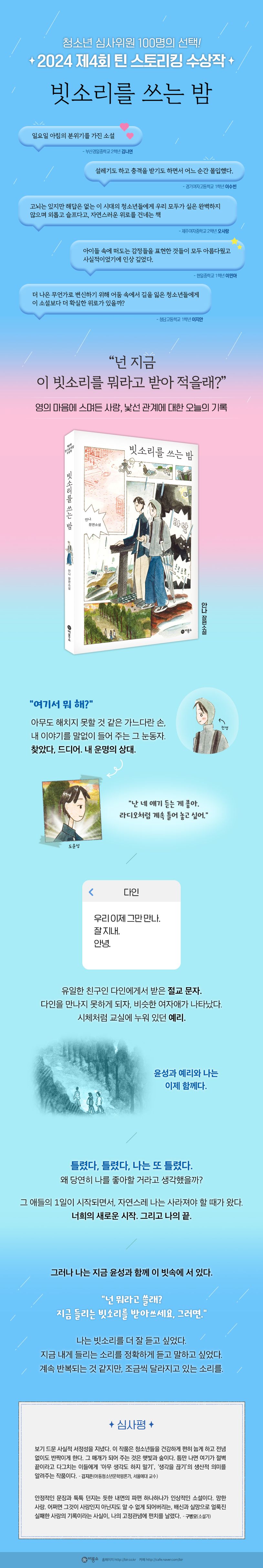 전국의 중고등학생 청소년 100명이 직접 뽑은 문학상,제4회 틴 스토리킹 수상작 안나의 소설『빗소리를