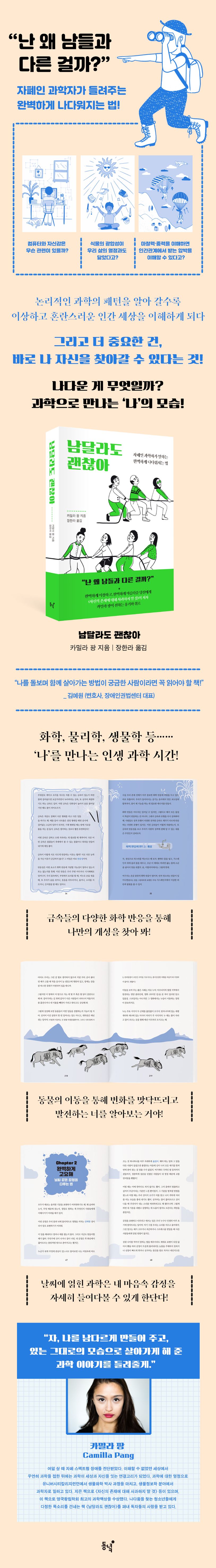 여덟 살에 자폐 스펙트럼 장애를 진단받은 저자 카밀라 팡에게도 세상과 사람들은 줄곧 이해하기 어려운 숙제였다. 남다르다고 취급받던 카밀라 팡은 어떻게 하면 내가 이 세상에 소속될 수 있는지 알아내려고 고군분투했다. 그러던 중 어린 시절 우연히 읽은 잡지에서 과학을 접하게 된 후, 과학은 이해할 수 없었던 인간 세상을 설명해 주는 언어가 되었다. 결코 이해할 수 없을 것 같았던 세상을 화학, 물리학 같은 과학을 통해 이해했다. 왜 남들과 다른 것인지 그리고 왜 남달라도 괜찮은 것인지 ‘나다워지는 법’을 깨달으며 카밀라 팡은 비로소 나로서 이 인간 세상에 발을 붙일 수 있게 됐다.