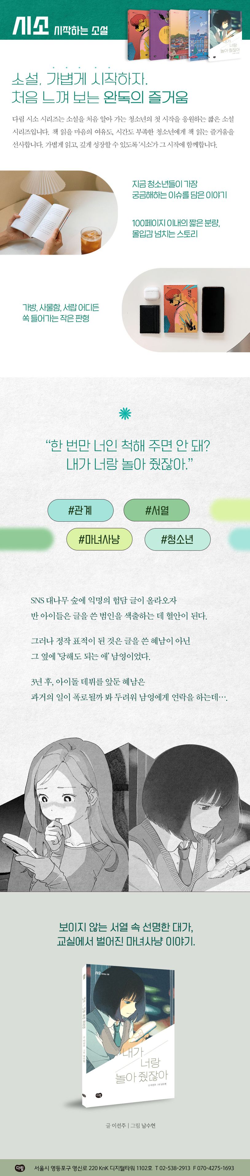 같은 교실, 같은 모양의 책상이지만 같은 자리란 없다. 창문을 뚫고 들어온 햇볕이 책상들을 어둠과 빛으로 가르는 것처럼. 자리는 우연히 정해지지만, 혹은 약간의 자력으로 움직여 볼 수 있다고 생각하지만, 햇볕은 그렇지 않다. 누가 어느 자리에 앉아 있건 동쪽에서 서쪽으로, 바깥쪽에서 안쪽으로 선명히도 작용한다. 또렷한 형체도 촉감도 없지만 분명히 존재하는 것, 그것을 서열이라 정의해도 될까. 《내가 너랑 놀아 줬잖아》는 교실 속 시시각각 기울어지는 빛의 경계를 그려 낸 작품이다.