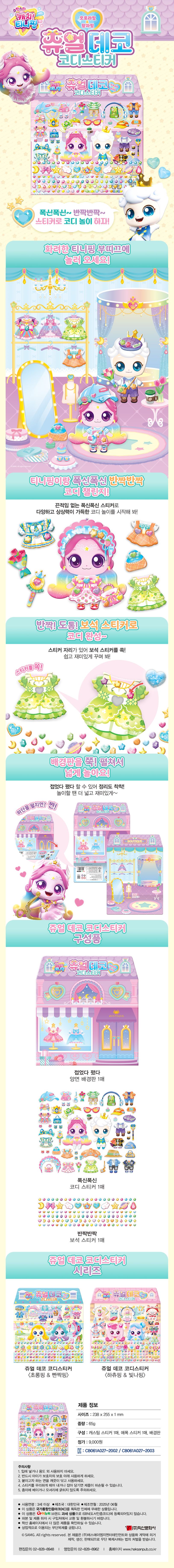 코디스티커에보석스티커를붙여꾸며봐요!폭신폭신한코디스티커의표시된자리에원하는색의보석스티커를쏙!넣으면티니핑들의의상이한층더반짝반짝!예쁘게완성된의상을티니핑에게입혀주고접었다폈다,배경판을펼쳐더넓고재미있게놀이해요!반짝반짝나만의티니핑의상을만들며,다양하고상상력이가득한코디놀이를시작해보세요.*인증유형:안전확인CB061A027-2002/CB061A027-2003