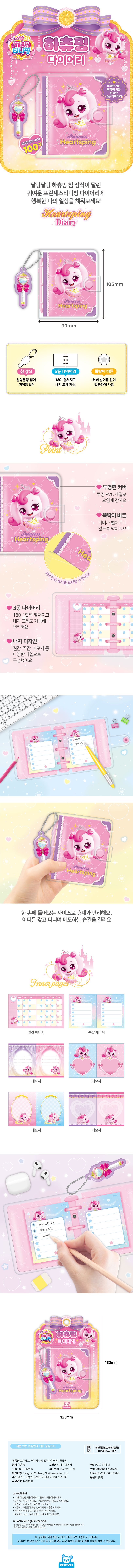 - 총 100장의 넉넉한 매수와 깜찍한 디자인의 속지로 구성된 하츄핑 3공 다이어리입니다.