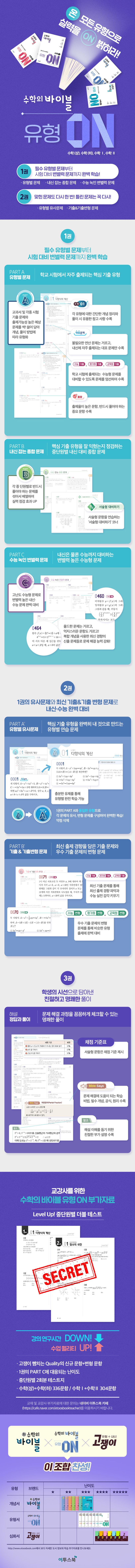 - 내신 잡는 종합 문제로 유형별 패턴 학습의 단점 극복 및 내신 대비 가능