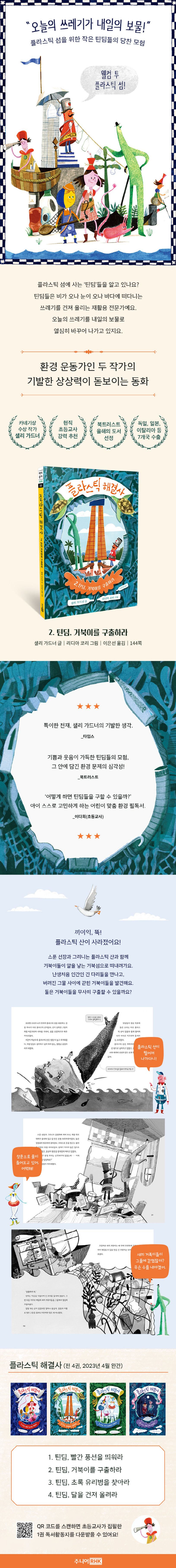 한 페이지도 빼놓지 않고 삽입되어 있는 귀여운 그림은 책을 덮는 마지막 순간까지 독자의 눈을 즐겁게 한다. 아기자기한 그림들 덕분에 〈플라스틱 해결사〉는 환경이라는 묵직한 주제를 다루고 있음에도 전혀 어렵지 않다. 각 권 마지막에는 플라스틱병이나 뚜껑 등을 재활용할 수 있는 쉽고 간단한 방법을 알려 주는 코너가 있어, 아이들이 집에서 따라 해 보며 일상 속 환경 보호를 실천해 볼 수 있다.