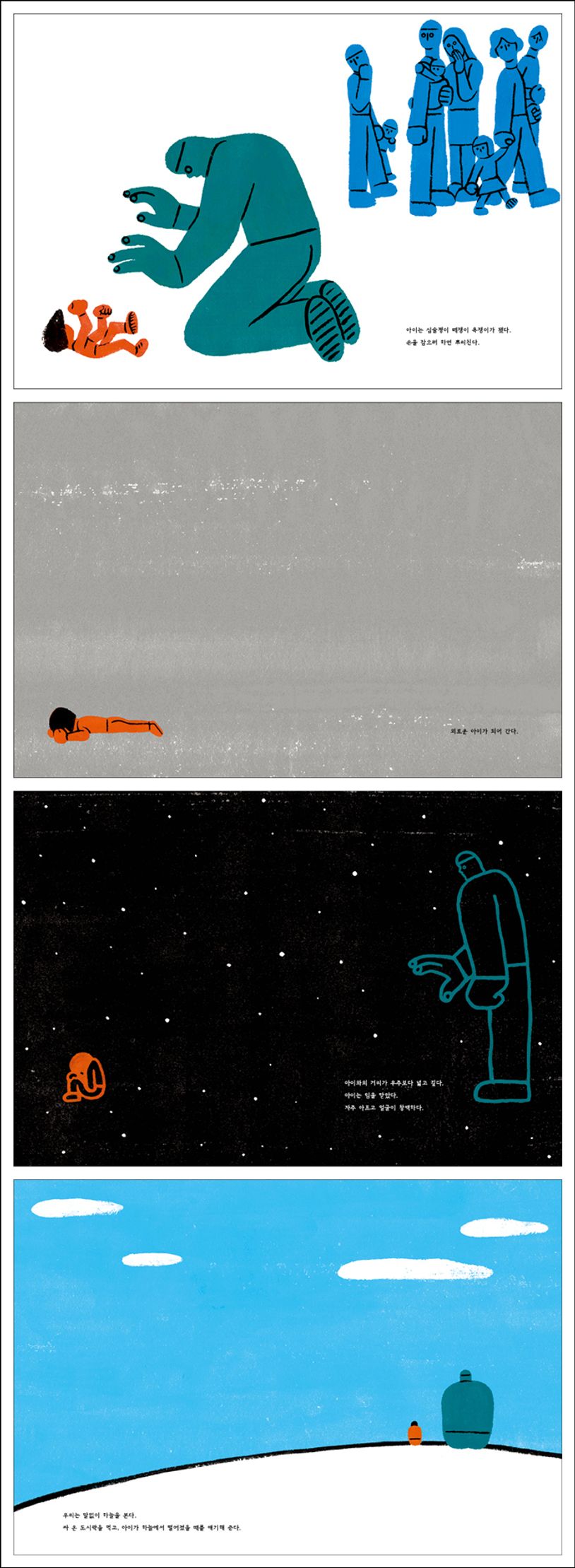 혈연의 관계로만 가족이 되는 것은 아니라는 것을 우리는 잘 알고 있다. 하지만 여전히 혈연이 아닌 가족 관계에 대해서는 은연중에 선입견 혹은 여러 겹의 시선을 가지게 된다. 스스로 놀라게 될 때도 분명 있을 것이다. 그 관계가 멀리 있을 때는 괜찮다가도 나에게 한 발짝 다가오면 동정 어린 시선이든 따가운 시선이든 색안경을 쓰고 바라보게 된다. 그림책 속 아이와 아빠를 두고 두런대는 군중들의 모습 속 누군가가 나는 아니었을까 자꾸 되돌아보게 된다.