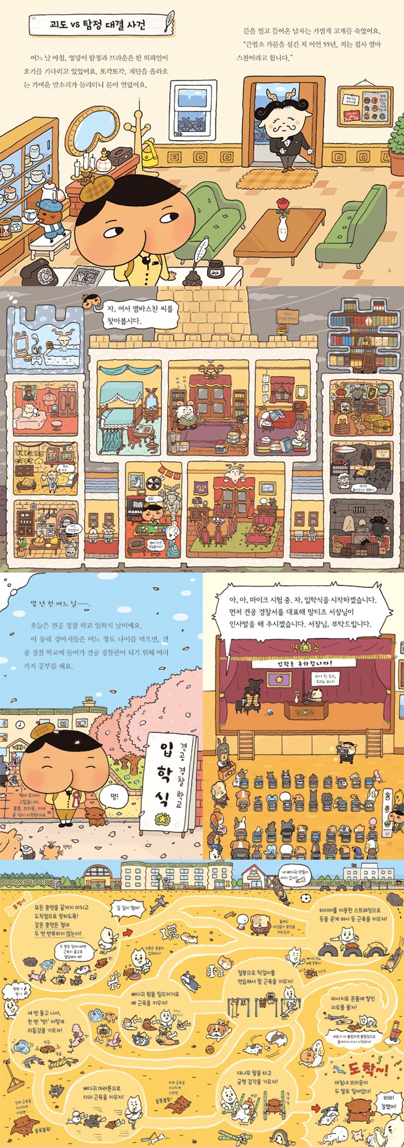 엉덩이를 꼭 닮은 얼굴 모양, 범인을 찾으면 진지한 얼굴로 유감없이 쏘아 대는 “뿌우우웅” 왕 방귀, 좋아하는 음식은 고구마 파이, 입버릇처럼 하는 말은 “흠흠, 냄새가 나는군!” 등 기상천외한 개성이 돋보이는 엉덩이 탐정과 말을 하는 강아지 조수 브라운이 선사하는 흥미진진한 추리 이야기 『추리 천재 엉덩이 탐정』. 어른스러운 말투와 뛰어난 추리력을 가진, 빈틈이란 없어 보이는 천재 탐정이 입에서 지독한 방귀를 뀌어 범인을 잡는다는 설정으로 어린이 독자들에게 반전 매력을 선사하며 어린이 독자들의 추리력은 물론, 사고력 향상과 긍정적인 학습 태도까지 기를 수 있게 도와줍니다.