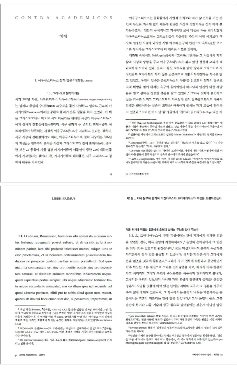 아우구스티누스는 인기 있고 존중받는 교부이지만, 그의 철학(함)의 의미와 사상편력은 대중에게 그다지 잘 알려져 있지 않다. 물론 생전에 이미 백여 권이 넘는 방대한 저작을 남긴 사상가의 정신을 이해하는 일은 쉽지 않겠지만, 유명세에 비해서 《고백록》을 제외한 그의 다른 작품들은 제대로 된 조명을 받지 못하고 있다. 이러한 상황에서 아우구스티누스의 철학적 논리를 명료하게 보여 주는 『아카데미아학파 반박』은 아우구스티누스 철학의 입문서로서도 훌륭한 역할을 해 줄 것이다.