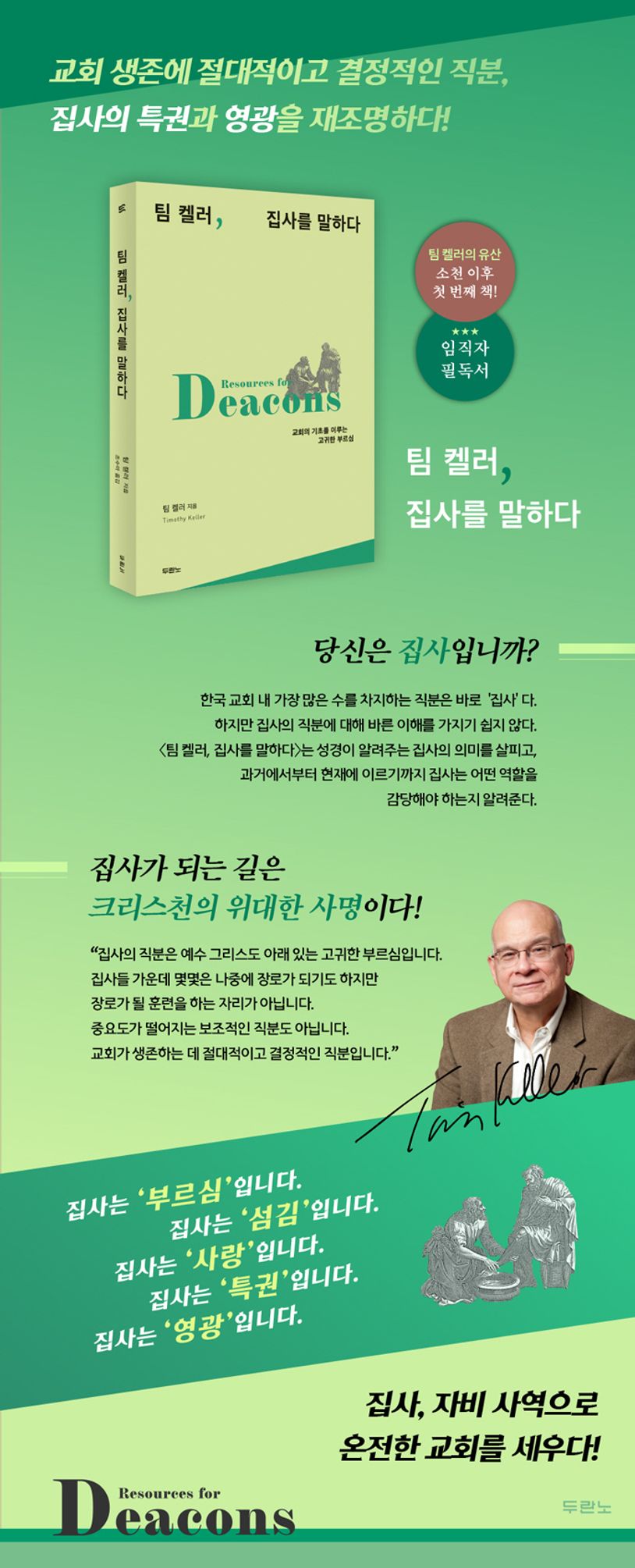 췌장암투병중이던팀켈러는2023년5월19일,72세의나이로세상을떠났다.이책은그의소천후처음번역본으로출간하는도서로,그를기억하며그의첫저술을소개한다.이것은지금의한국교회에도성경적인집사관으로도전을줄것이다.