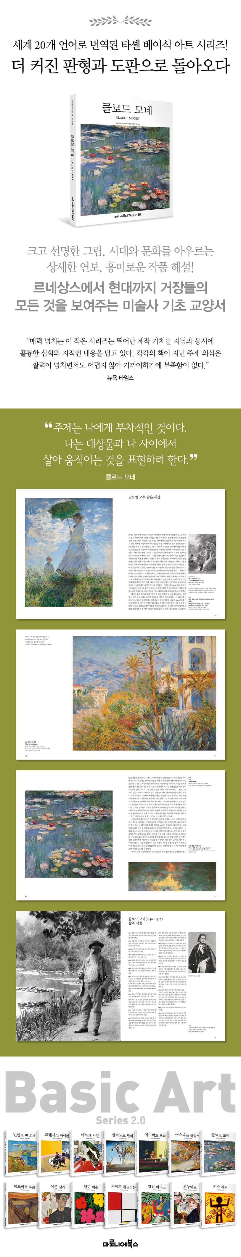 베이식 아트 시리즈는 1985년 피카소 작품집을 시작으로 베스트셀러 아트북 컬렉션으로 거듭났다. 그 이후 간결하고 얇은 작가별 도서는 200여 종이 넘게 제작되었고, 20여 개 국어로 출간되었다. 이 시리즈는 뛰어난 제작 가치를 지님과 동시에 훌륭한 삽화와 지적인 내용을 담고 있다. 각각의 책이 지닌 주제 의식은 활력이 넘치면서도 어렵지 않아 가까이하기에 부족함이 없다. 2005년 첫 한국어판을 출간한 이후 15년 만에 새롭게 재출간되었다. 이번 〈베이식 아트 2.0〉 시리즈는 전보다 더 커진 판형과 도판으로 독자들에게 보다 생생한 작품 이미지를 전달한다.