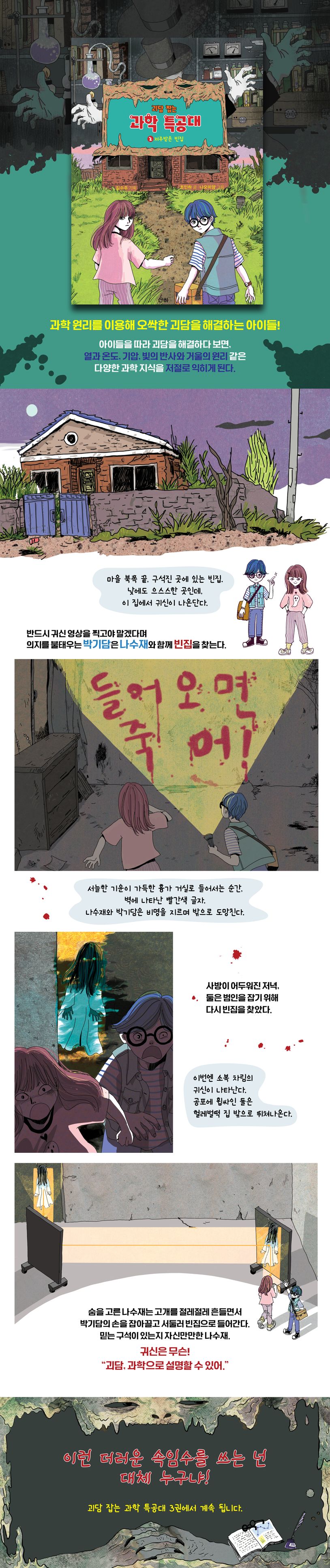 《괴담 잡는 과학 특공대 ② 저주받은 빈집》은 박기담과 나수재가 사는 마을의 빈집에서 일어난 괴담을 파헤쳐 가는 모험을 담고 있습니다.