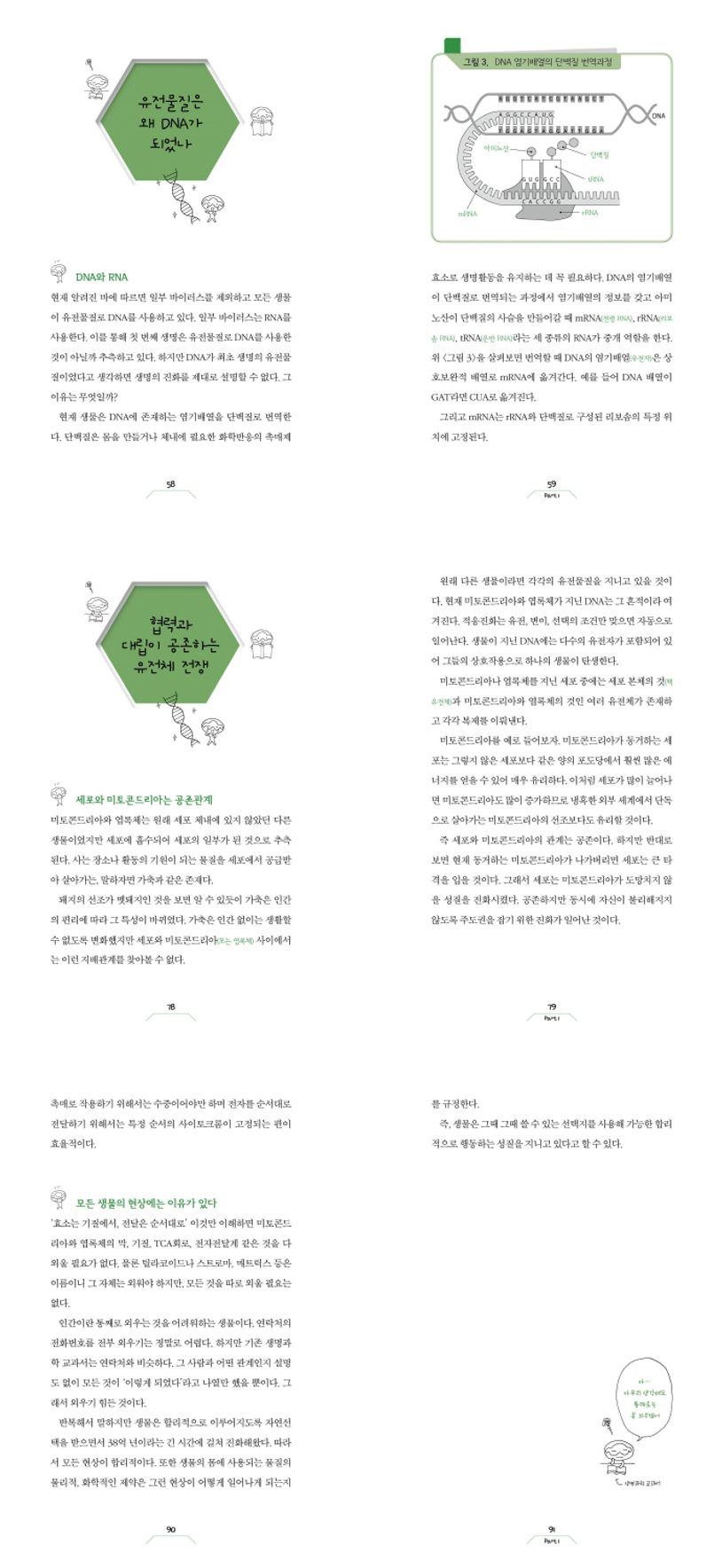 지구에는 무수히 많은 생물이 있고, 그에 따른 생물현상도 무궁무진하다. 그래서 생물과 생물현상을 다루는 생명과학이 엄청난 분량과 복잡한 내용일 수밖에 없다고, “현기증이 날 정도로” 어렵다고 많은 학생들이 생각한다. 하지만 이 책은 생명과학은 “어떻게 이루어져 있나(How)”라는 주제로 시작해 “왜 이렇게 되었을까(Why)”를 설명하는 학문이라고 설명하며, 이 두 질문을 토대로 ‘진화’ 원리를 통해 방대한 생명과학을 일목요연하게 정리했다.