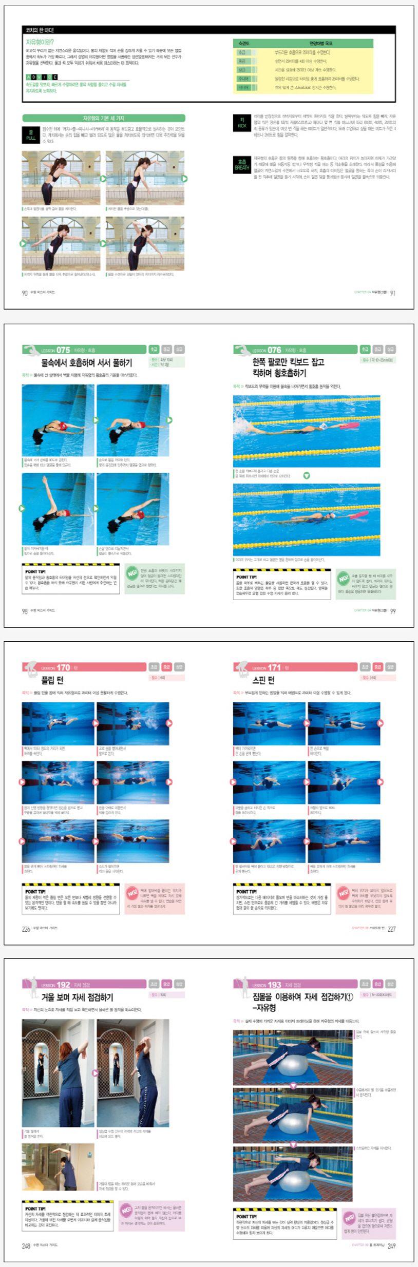 『수영 마스터 가이드』는 자유형, 평영, 배영, 접영의 4가지 영법을 마스터할 수 있는 다양한 훈련 방법과 보다 수준 높은 수영을 위한 고급 기술까지 담은 수영 교본이다. 일본의 인기 수영강사인 저자는 수영의 매력을 느낄 수 있도록 재미있는 레슨 노하우를 소개하며, 수영 월드 스타 박태환 선수가 2008 베이징 올림픽 금메달을 딸 수 있도록 도운 노민상 감독의 철저한 감수가 더해졌다. 수영의 기초부터 4가지 영법 마스터는 물론 스타트와 턴, 홈 트레이닝 등 혼자서도 충분히 할 수 있는 200가지 훈련법을 컬러 사진과 함께 수록하였다.