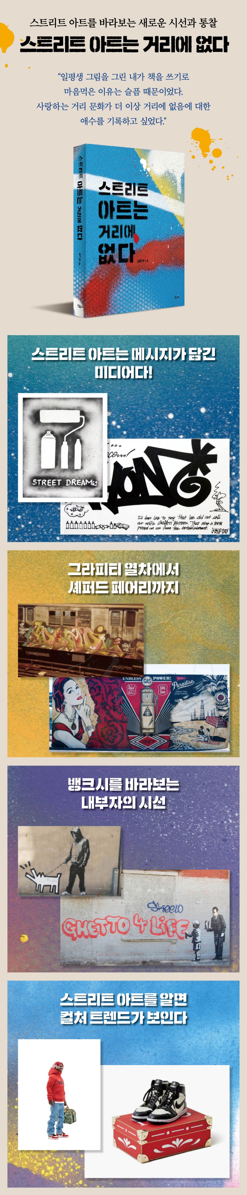 이제 스트리트 아트는 더 이상 길거리에 존재하지 않는다. 모두 소비되었거나 주류의 끈을 붙잡고 떠나버렸다. 저자는 ‘그럼에도 불구하고’ 무엇이, 왜 좋은지에 대한 질문이 수반되어야 할 때라고 선언한다. 사실이나 정보의 나열이 아닌, 시대정신을 꿰뚫어보는 통찰이 필요한 때라고 말이다.