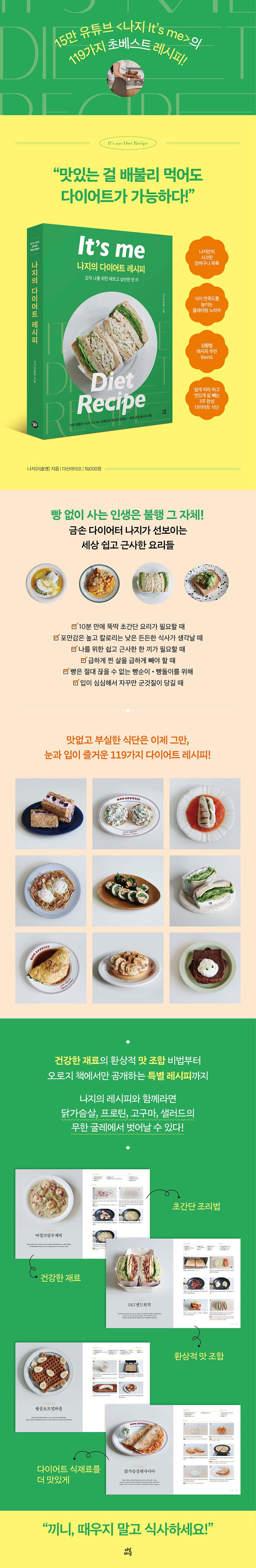 세상에 몸에 좋고 건강한 다이어트 재료들은 너무나 많다. 하지만 그 사이 적절한 조합을 찾지 못해 식단에 흥미를 잃고 간편식에 의존하고 있는 다이어터와 유지어터를 위해 이 책에서는 기발한 아이디어가 넘치는 레시피를 소개한다. 나지만의 시크릿 장바구니 목록부터 한 가지 재료로 세 끼 연속 맛있게 먹는 법, 식이 만족도를 높이는 플레이팅 노하우, 미처 알지 못했던 다이어트 식재료 활용법, 쉽게 따라 하고 맛있게 살 빼는 3주 완성 다이어트 식단까지 나지의 레시피와 함께라면 닭가슴살, 프로틴, 고구마, 샐러드의 무한 굴레에서 벗어날 수 있다.