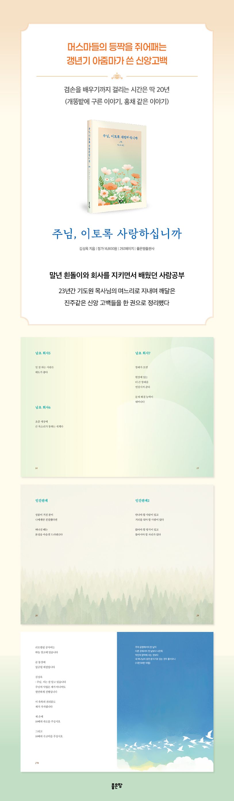 《주님, 이토록 사랑하십니까》는 주님의 사랑 안에서 회복과 위로를 경험한 저자의 신앙 여정을 따뜻한 문장으로 담아낸 책이다. 김성옥 저자는 일상 속에서 마주하는 삶의 질문과 고난 앞에서도 주님의 음성에 귀 기울이며, 그분의 섬세한 사랑을 발견하는 여정을 고백한다. 삶에 지치고 방향을 잃은 이들과 믿음의 걸음을 함께 걷는 이들에게 조용한 위로와 소망을 전하는 신앙 시집이다.