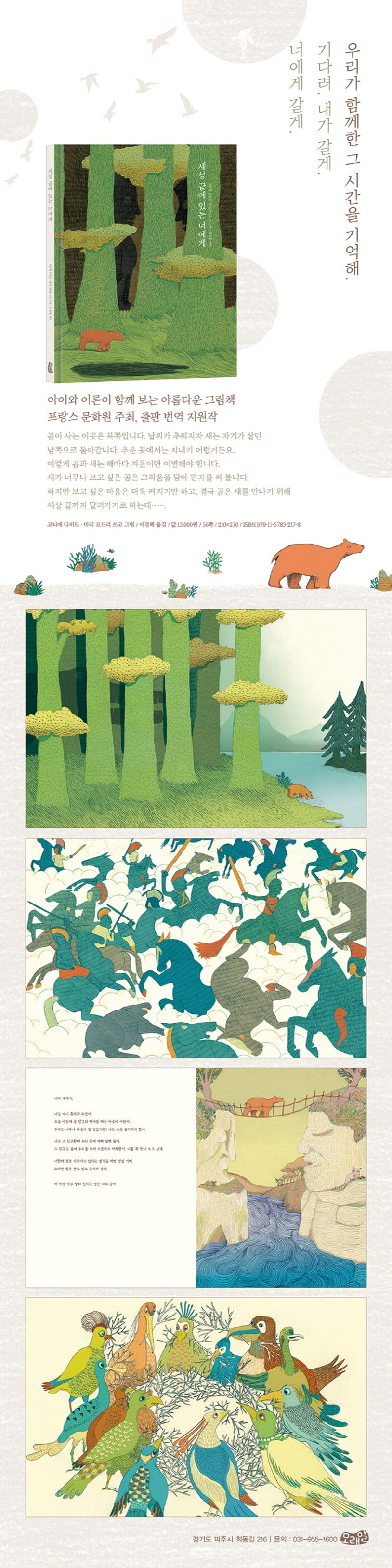 사랑과 그리움을 담아 쓴 편지글과 마음을 끌어당기는 이미지가 어우러지는 그림책입니다. 프랑스 문화원의 출판 번역 지원 프로그램에 선정, 그 아름다움을 인정받았습니다. 사랑하는 사람을 떠올리며 천천히 소리 내어 읽으면 작품을 더욱 풍성하게 느낄 수 있습니다.