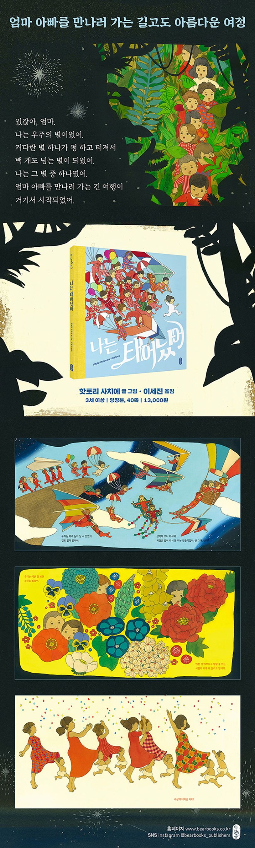 나의 탄생에 대해 궁금해하는 아이들에게 건네는 그림책입니다. 머나먼 우주의 별에서 엄마 아빠에게 오기까지의 신비로운 여정을 통해 탄생이 얼마나 기적 같은 일인지 들려줍니다. 한 편의 시처럼 아름다운 글과 고전적이면서도 감각적인 그림이 어우러져 아이들은 물론, 어른들의 눈과 마음까지 사로잡습니다.