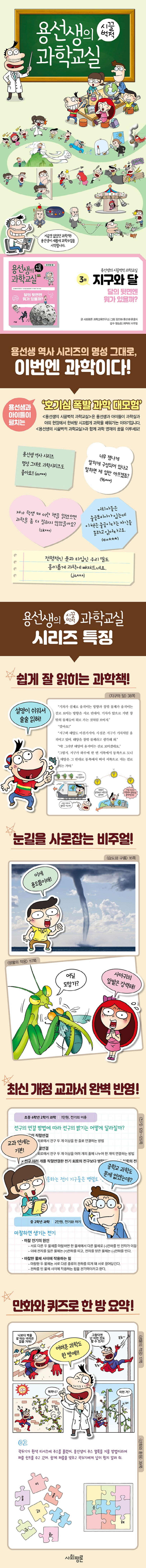용선생과 아이들이 한바탕 시끄럽게 과학을 배워 가는 『용선생의 시끌벅적 과학교실』 제3권 《지구와 달》. 대학에서 오랫동안 과학을 연구하고 교육 현장에서 직접 아이들을 가르쳐 온 과학 교육 전문가들이 기획부터 편집까지 개발 전 과정에 참여하며 공들여 만든 책으로, 아이들의 눈높이에서 내용을 술술 이해할 수 있도록 쉽게 서술하고, 생생한 사진과 기발한 삽화로 단숨에 내용을 이해할 수 있도록 했습니다. 2019년 최신 과학 교과서를 충실히 반영한 내용 구성, 호기심을 북돋우는 소재로 풀어낸 개념과 원리 등 초등학생이 꼭 알아야 할 과학의 모든 것을 담았습니다.