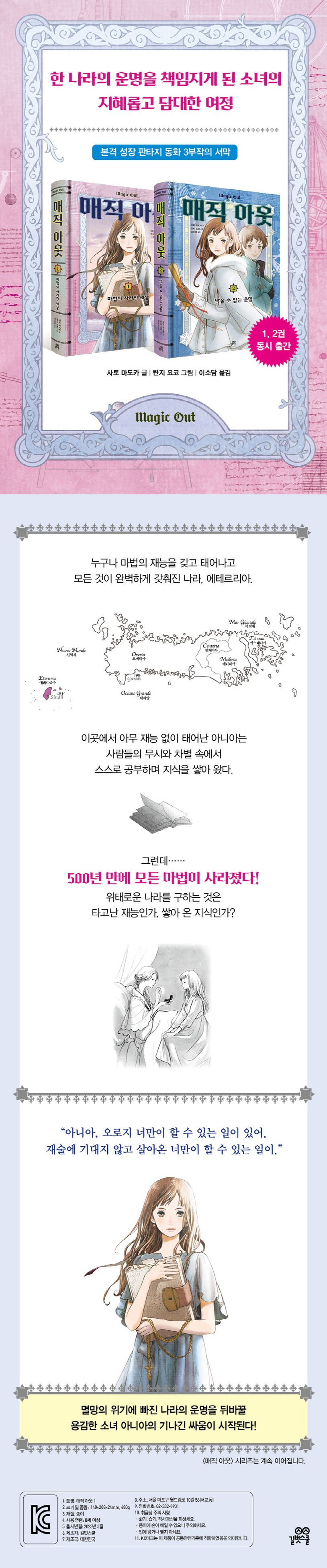 〈매직 아웃〉은 흥미 위주의 판타지를 넘어서서 독자들에게 묵직한 질문을 던진다. 평등한 사회란 무엇인지, 과학 기술이 인간에게 어떤 영향을 미쳤는지, 인간은 자연과 어떻게 공존하며 살아야 하는지 등 다양한 측면에서 생각할 거리를 안기는 작품이다. 〈해리 포터〉 〈나니아 연대기〉처럼 긴 호흡으로 이어지는 본격 판타지 동화를 기다려 온 어린이에게 반가운 선물이 되어 줄 것이다.