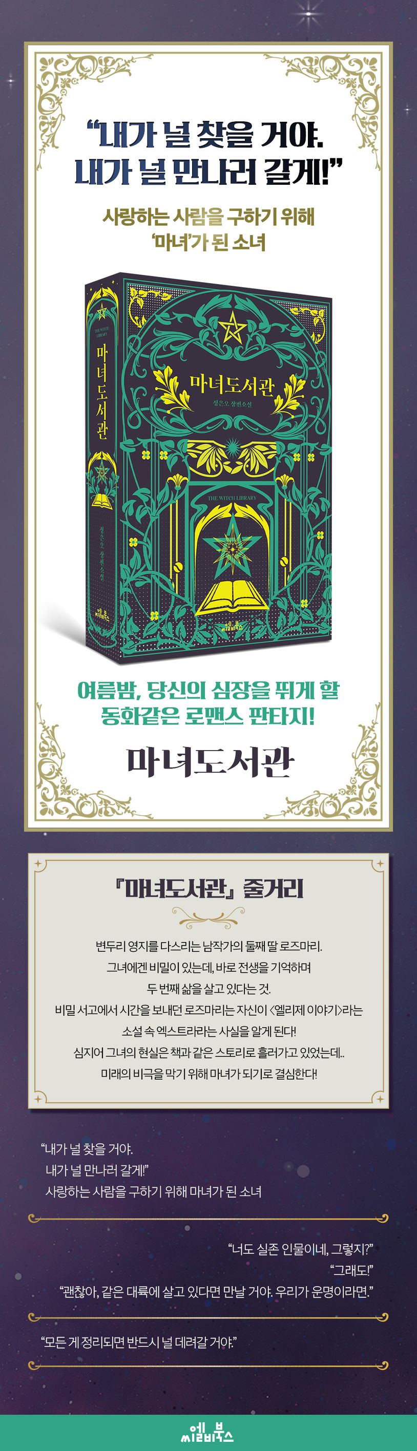“나는 엑스트라다”라는 선언으로 시작되는 《마녀도서관》은 운명의 힘을 받아들이고 마침내 자기 삶을 스스로 개척해가는 소녀의 성장기다. 사랑하는 사람들을 지키기 위해 기꺼이 마녀가 된 소녀의 서사가 몰입감 있게 그려지는 사이, 독자는 강인하고 에너지 넘치는 로즈마리의 편이 되고야 만다.