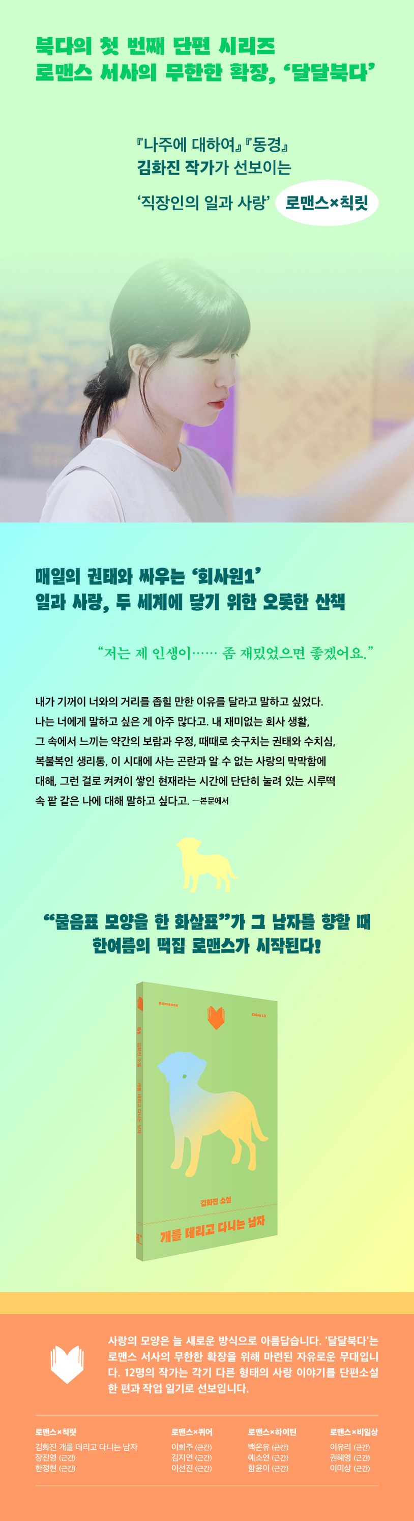 ‘사랑’의 모양은 늘 위태로울 만큼 다양하며, 그것과 관계 맺는 우리의 자리 역시 매 순간 다르게 아름답다. 여기에 동의하는 이에게 새로운 로맨스 서사의 등장은 여전한 기쁨일 것이다. ‘달달북다’는 로맨스의 무한한 변신과 확장을 위해 마련된 무대다.