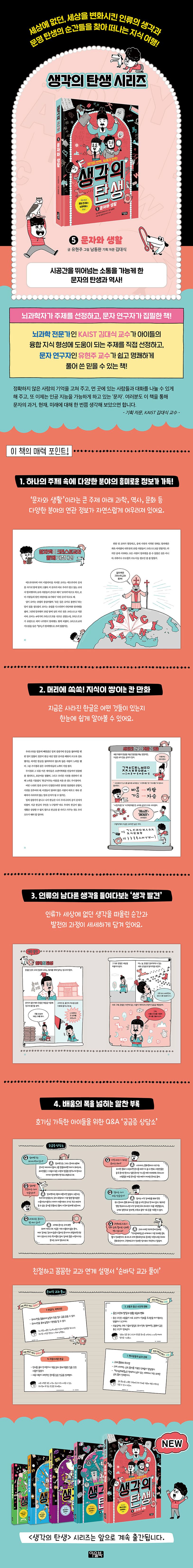자라나는 아이들은 어느 한쪽에 치우치지 않고 다양한 세상을 두루 접할수록 폭넓은 사고를 갖춘 사람으로 성장할 수 있습니다. 『생각의 탄생』은 바로 그런 목적으로 기획된 시리즈입니다.