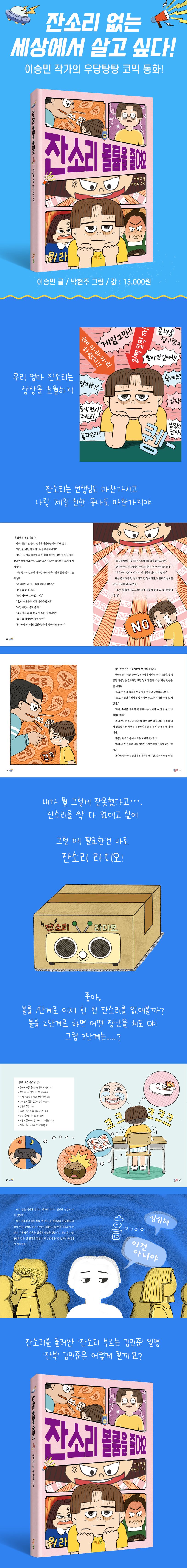 나를 끊임없이 가만두지 않는 잔소리. 사실 그 기저에는 애정과 사랑이 있음을 우리는 모르지 않습니다. 어린이들은 민준이를 통해 자신들의 마음을 표현하며 후련함을 만끽하는 동시에 잔소리하는 이의 마음 또한 이해하게 될 겁니다. 깔깔깔 웃으며 페이지를 넘기다 보면, 어느새 서로의 마음을 들여다보게 되니까요. 이 책을 통해 어린이들이 소중한 일상을, 다른 이의 마음을 더 큰 눈으로 새로이 바라보게 되길 바랍니다.
