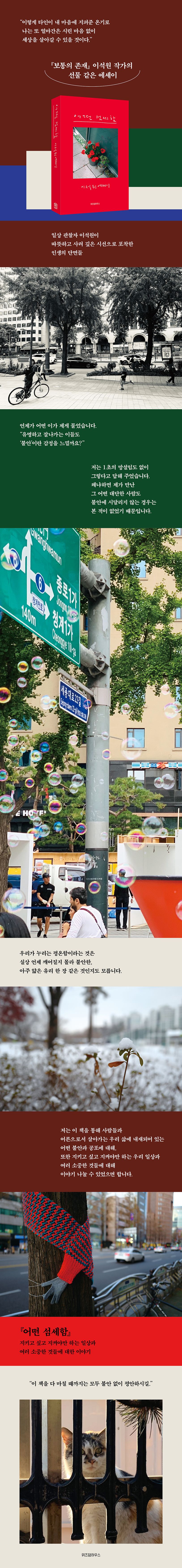 남의 하소연을 함부로 징징댐으로 치부하지 않는 태도를 갖는 것, 남들과 대화할 때는 그 자리에 있는 모든 이들에게 골고루 시선을 주는 것. 누군가 아파 쓰러지면 무작정 일으켜 세울 게 아니라 그 사람의 상태를 봐가면서 그에게 필요한 도움을 주는 것. 다시 말해서 주인공은 도움을 주는 내가 아니라 도움을 받는 상대라는 사실을 잊지 않기. 따라서 내가 주고 싶은 것이 아니라 상대가 필요로 하고 받고 싶은 것을 먼저 생각하는 마음이 ‘섬세함’이라고 정의 내리는 작가의 태도가 다양한 소재를 펼쳐낸 글들의 곳곳에 그대로 드러나 있다. 끊임없이 세상에 상처입고 화해하면서 얻어낸 시선이 따뜻하게 빛난다.