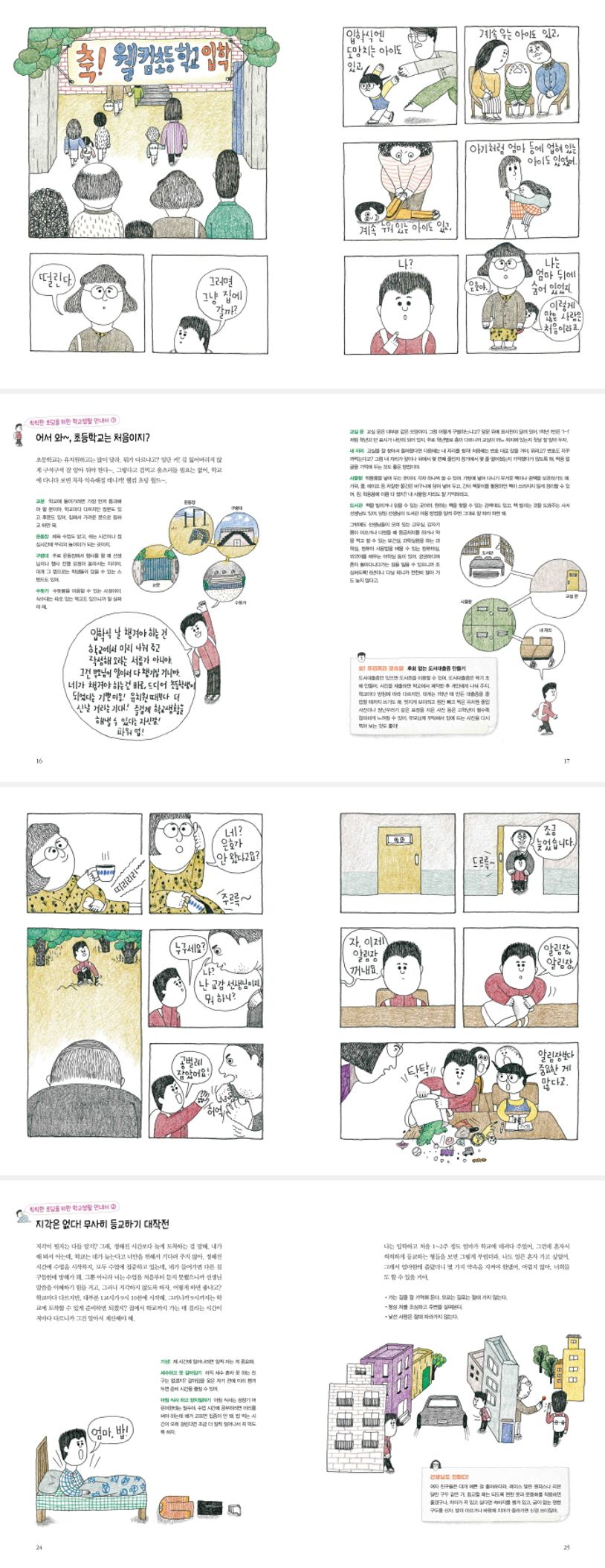 이 책은 재미있는 만화를 보면서 어린이가 스스로 즐거운 입학 준비를 할 수 있도록 만들었습니다. 초등학교 입학이 기대도 되지만 왠지 떨리고 긴장되는 마음, 잘할 수 있을지 걱정이 앞서는 어린이들에게 스스로 입학 준비를 해 볼 것을 권합니다. 학교생활을 몸소 해야 하는 주인공은 바로, 어린이 자신이니까요. 초등학교에 처음 입학한 어린이라면 누구나 겪을 법한 일들을 골라 만화로 엮었기 때문에 재밌고 쉽게 볼 수 있고, 더불어 ‘등하교, 급식, 화장실 사용, 학습, 놀이, 친구’ 등 초등학교 생활에 대한 다양하고 알찬 정보가 쏙쏙 들어 있어 즐겁게 학교생활에 대해 알아볼 수 있습니다.