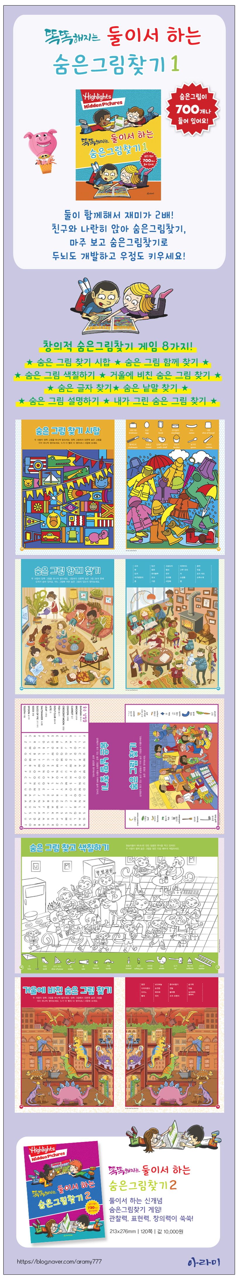하이라이츠는 미국에서도 손꼽히는 대형 출판그룹으로, 73년 동안 꾸준히 아이들을 위한 교육 퍼즐을 개발해 왔습니다. 아이들은 하이라이츠에서 개발한 숨은그림찾기, 미로찾기, 수학퍼즐 등을 하면서 집중력과 끈기, 창의력과 논리력을 키우며 두뇌를 발달시킬 수 있습니다.