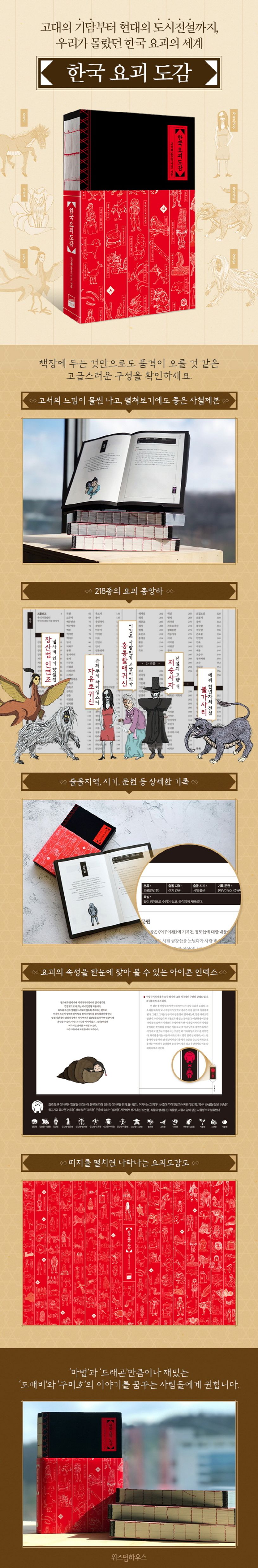 《한국 요괴 도감》의 저자 고성배는 일본 퇴마 만화를 보며 ‘왜 우리나라의 괴물을 정리한 책은 없을까?’라는 의문을 갖다가 직접 고대부터 현대까지의 괴물들을 수집하여 정리했다. 그렇게 출간한 독립출판물은 독자들에게 폭발적인 반응을 받으며 화제가 되었고, 이후 다양한 괴물·요괴 콘텐츠가 소개되는 데 도화선이 되기도 했다. 《한국 요괴 도감》은 《삼국유사》, 《삼국사기》 등의 고문헌과 다양한 민담을 바탕으로, 고대부터 현대까지 우리나라에 존재했던 괴물, 귀신, 사물, 신을 소개한 책이다. 각 괴물의 출몰 지역과 시기, 특징, 기록된 문헌을 통해 총 218종의 괴물을 소개한다. 《한국 요괴 도감》을 통해 지금까지 봉인돼 있었던 신비한 괴물의 세계로 들어가 보는 것은 어떨까.