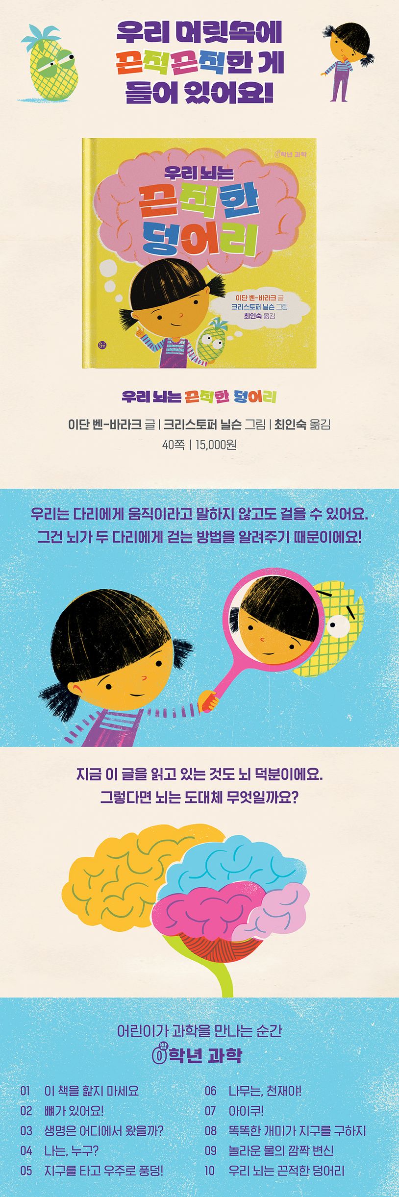 이 책은 볼 수도 만질 수도 없는 뇌가 어떻게 생겼는지, 무슨 일을 하는지, 왜 필요한지에 대해 여러 이야기를 합니다.