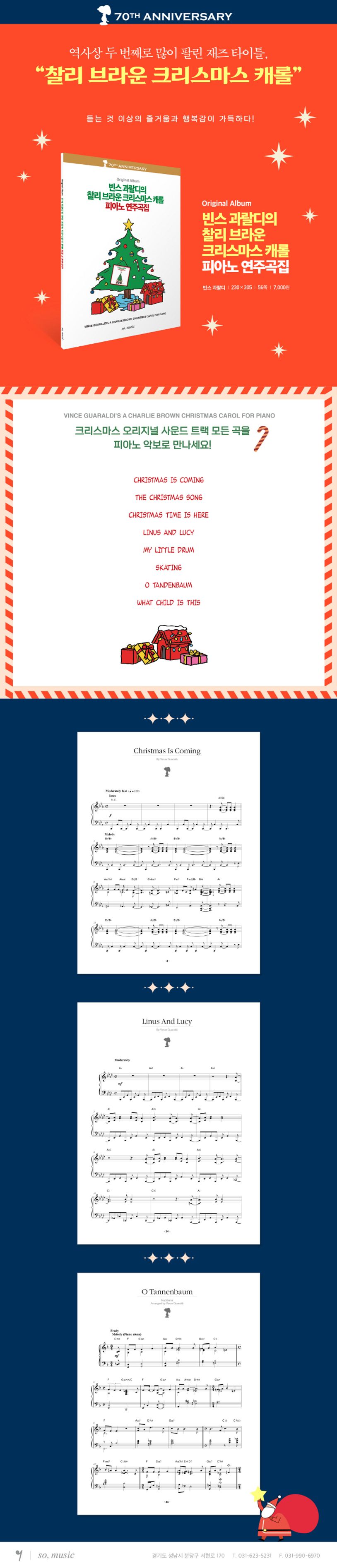 빈스 과랄디의 찰리 브라운 크리스마스 캐롤의 음악은 라디오를 통해 여기저기 BGM으로 누구나 들어봤을 유명한 곡들이다. 이 책에는 오리지널 사운드 트랙 모든 곡을 그대로 피아노 악보로 수록하였다. 저마다의 크리스마스 추억을 떠올리며 한 곡 한 곡 연주해본다면, 듣는 것 이상의 즐거움과 행복감이 가득할 것이다.