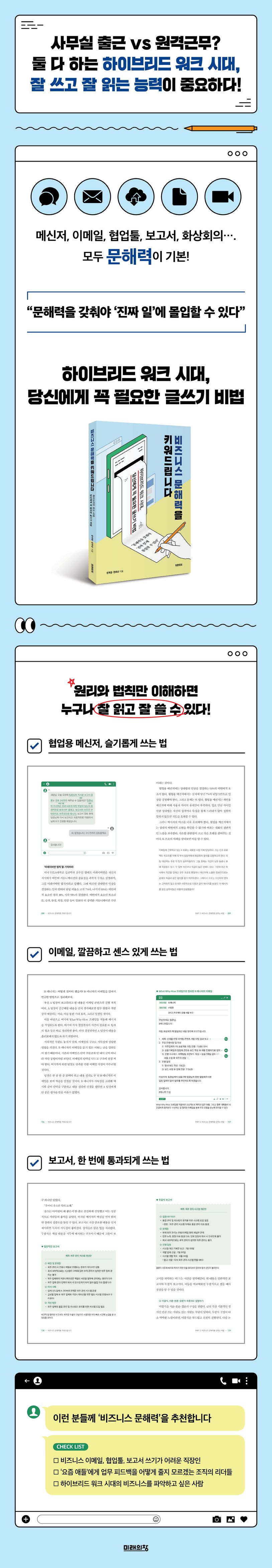 재택근무, 비대면 근무가 흔한 일이 됐다. 우리는 사무실에 출근해 대화로 하는 커뮤니케이션보다 집에서 키보드 타자 치면서 커뮤니케이션하는 일이 많아졌다. 이 상황에서 문해력 수준이 낮은 직원일수록 더 크게 오해할 상황을 만들고 이를 바로잡는 일도 더 어렵게 만들 것이다. 실제로 업무의 현장에서는 문해력 부족으로 상사나 외부 업체에 내용을 잘못 전달하는 참사를 일으키거나, 보고서를 쓰지 못해서 안절부절 어쩔 줄 몰라 하는 직장인들이 늘어났다. 일에는 원래 잘 읽고 잘 쓰는 일이 중요했지만, 대면과 비대면을 오가는 하이브리드 워크 시대의 문해력 역량은 더더욱 필요하다.