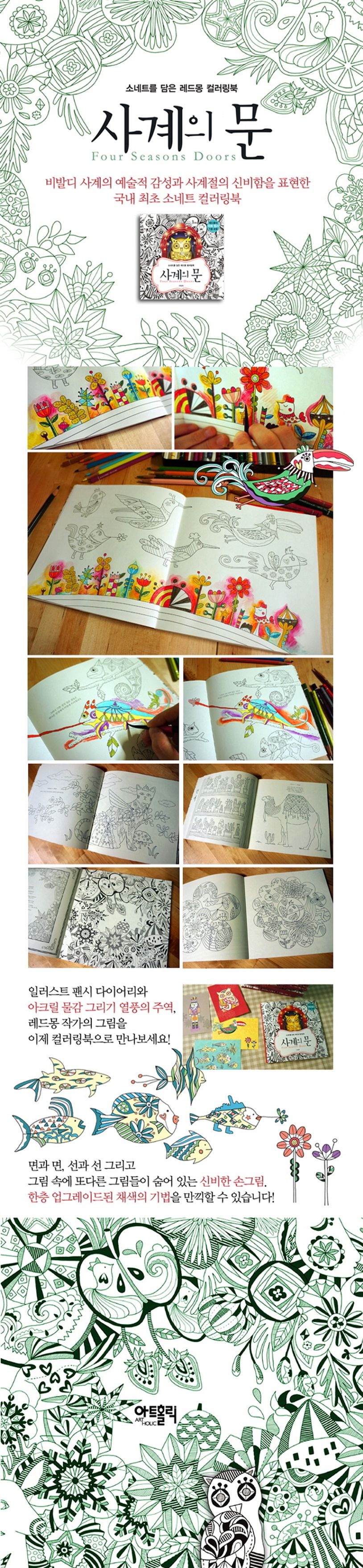 특히레드몽작가는독자들의채색작업을상상하면서하나하나씩선을이어가며《사계의문》에정성껏그림을담았습니다.작가의이러한세밀함과친절함이채색의기쁨을배가해줄것입니다.