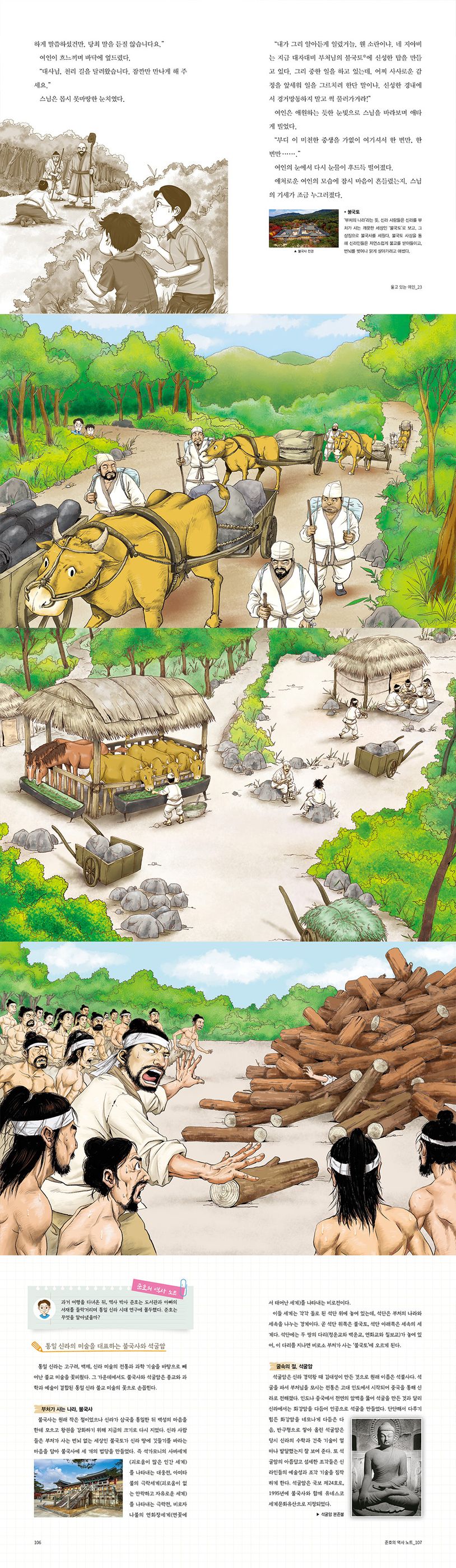 이번에 준호와 민호가 도착한 곳은 경주의 불국사. 불국사를 한창 짓고 있는 그곳에서 남편을 만나게 해 달라는 여인을 보게 됩니다. 백제의 옛 수도 사비성에서 온 여인은 불국사에서 탑을 만들고 있는 남편을 만나려고 먼 길을 왔지만, 스님은 탑에 부정이 탈까 봐 얼씬도 못하게 합니다. 준호와 민호는 일꾼으로 변장을 하고 백제의 석공을 찾아 불국사 안으로 들어가는데…….