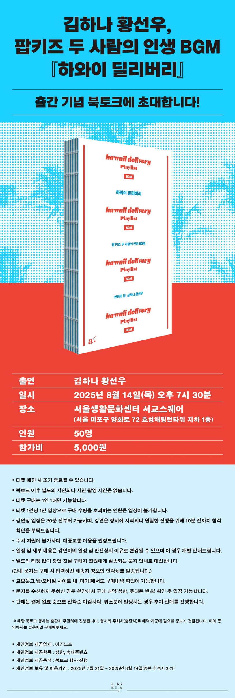 <하와이 딜리버리> 도서+북토크 강연 패키지(도서포함)(온라인전용상품)